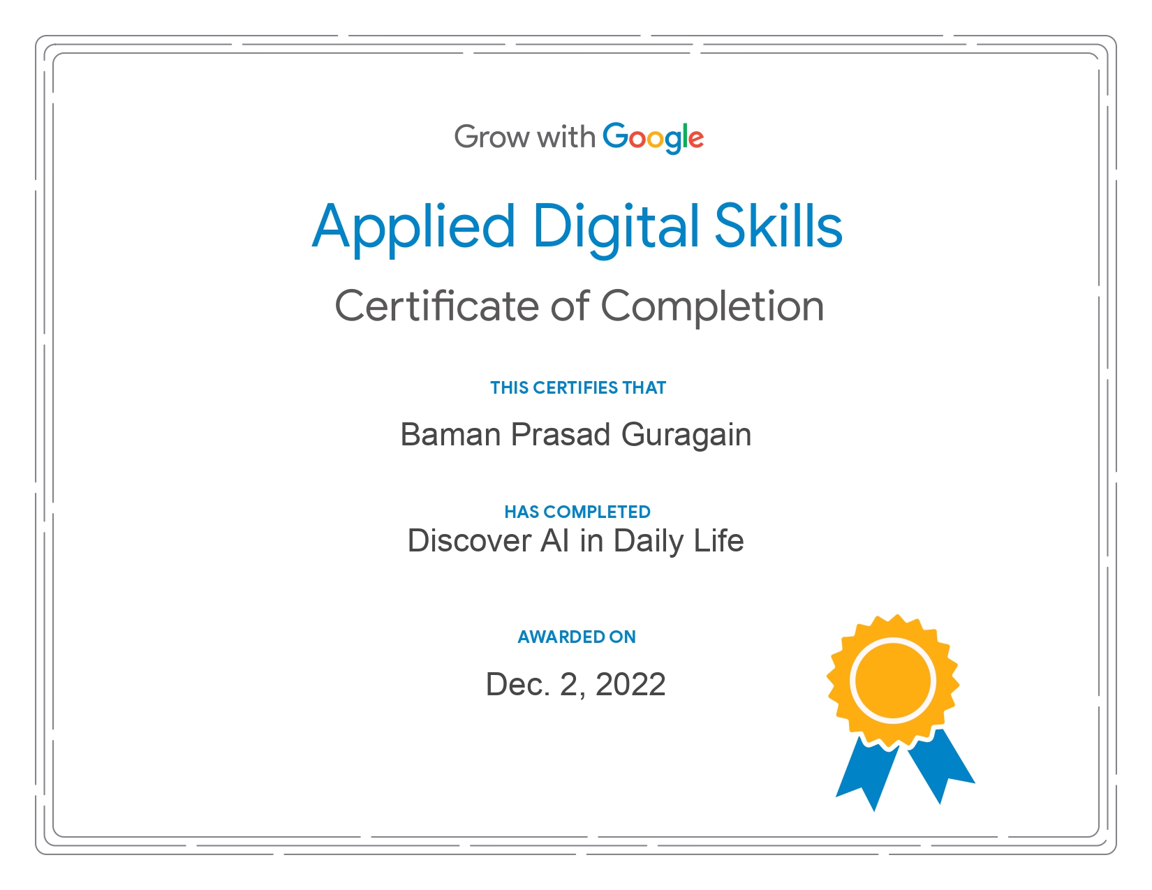Google / Applied Digital Skills · Dec 2022